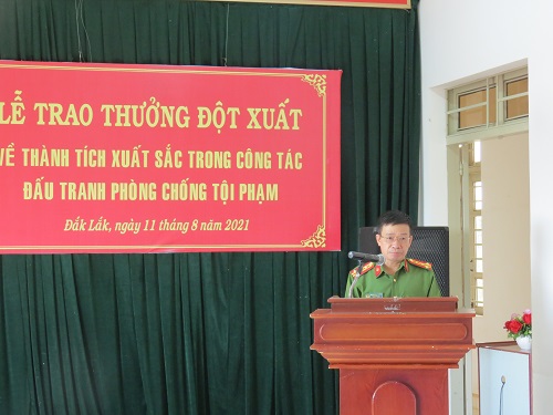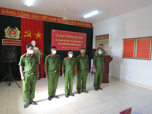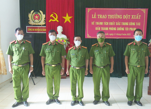Giám đốc Công an tỉnh Đắk Lắk vừa khen thưởng đột xuất cho Công an huyện Cư Kuin về thành tích triệt xóa 01 tụ điểm đánh bạc quy mô lớn giữa lúc đang giãn cách theo Chỉ thị 16 để phòng, chống dịch.