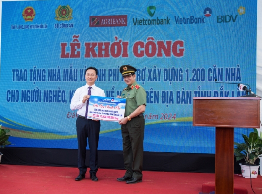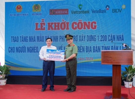 Sáng ngày 21/3/2024, Bộ Công an và tỉnh Đắk Lắk đã tổ chức Lễ khởi công, trao tặng nhà mẫu và kinh phí hỗ trợ xây dựng 1.200 căn nhà cho gia đình khó khăn về nhà ở, gia đình chính sách, đồng bào dân tộc thiểu số trên địa bàn tỉnh Đắk Lắk. Đồng chí Thượng tướng Lương Tam Quang – Ủy viên Ban Chấp hành Trung ương Đảng, Thứ trưởng Bộ Công an và đồng chí Nguyễn Đình Trung - Ủy viên Ban Chấp hành Trung ương Đảng, Bí thư Tỉnh ủy Đắk Lắk chủ trì buổi Lễ.