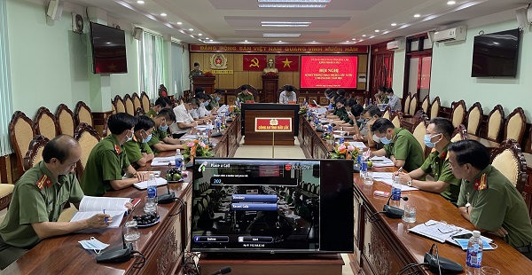 Đồng chí Đại tá Nguyễn Văn Hội - Phó Giám đốc Công an tỉnh thay mặt khối trưởng Khối thi đua số 3 tiếp thu ý kiến các đơn vị trong khối