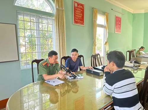 Đ/c Trung tá Hồ Phi Nam – Phó Trưởng Công an huyện làm việc với đối tượng Giàng Seo Xềnh
