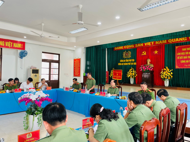 Ban thường vụ Đảng ủy Công an tỉnh cùng đoàn công tác vừa có buổi làm việc với Đảng ủy Công an thành phố Tuy Hòa về kết quả thực hiện Nghị quyết Đại hội Đảng bộ Công an thành phố, nhiệm kỳ 2020 – 2025.