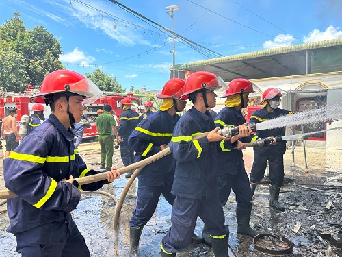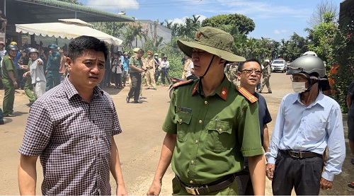 Lực lượng Công an tham gia chữa cháy tại hiện trường.