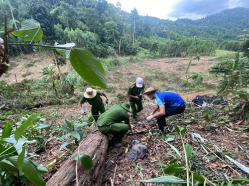 CBCS Phòng Kỹ thuật hình sự đi bộ băng rừng Khám nghiệm hiện trường, khám nghiệm tử thi vụ hài cốt Chết chưa rõ nguyên nhân tại khu vực đồi vắng xã Cư Mta, huyện M’Đrắk
