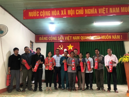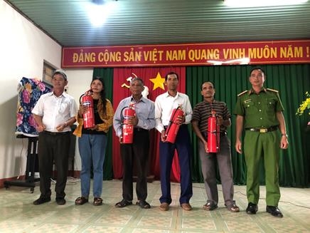 Trao bình chữa cháy cho đại diện các cơ sở tôn giáo trên địa bàn xã Ea Drông