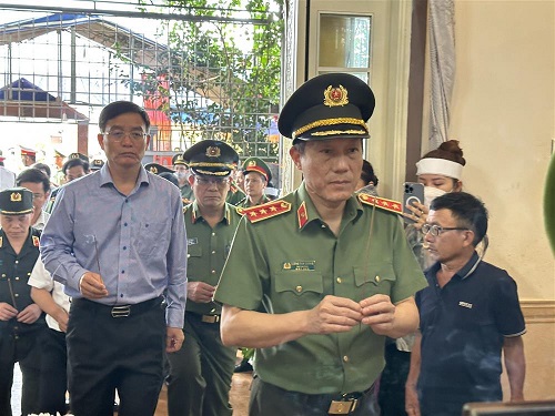 Bộ trưởng Tô Lâm gửi vòng hoa viếng, chia buồn cùng thân nhân các đồng chí Công an xã hy sinh.