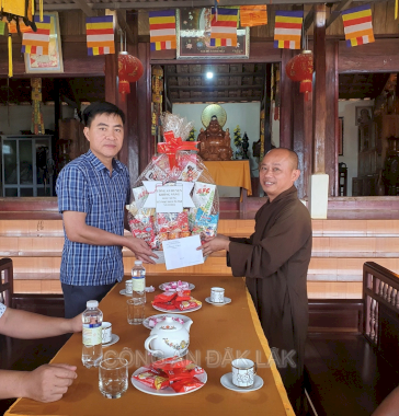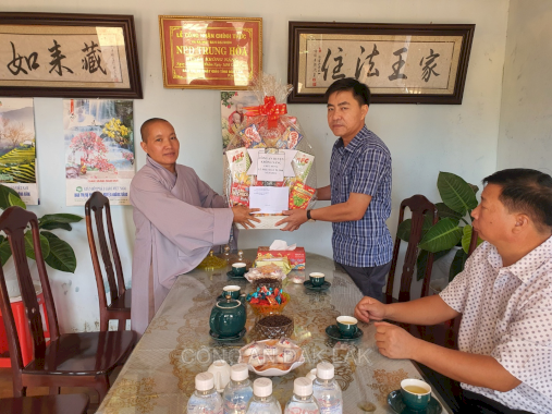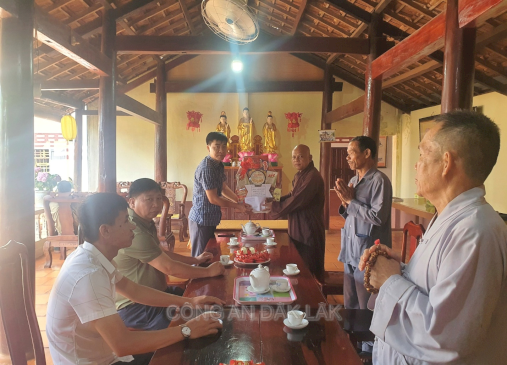 Lãnh đạo Công an huyện thăm, chúc mừng các cơ sở Phật giáo trên địa bàn