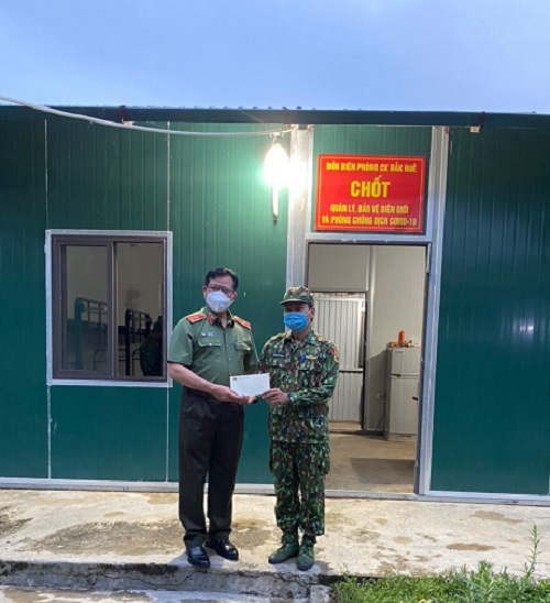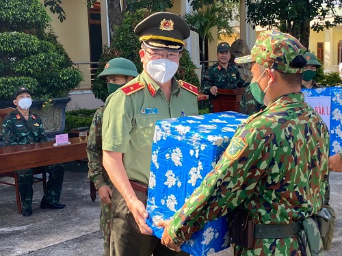 Cũng nhân dịp này, thay mặt toàn thể cán bộ, chiến sỹ lực lượng Công an tỉnh Đắk Lắk, đồng chí Thiếu tướng Lê Vinh Quy - Giám đốc Công an tỉnh đã trao tặng quà động viên cán bộ, chiến sĩ làm nhiệm vụ tại các Đồn Biên phòng và các chốt phòng, chống dịch Covid-19. Đây là món quà thể hiện sự quan tâm, chia sẻ đối với những khó khăn, gian khổ của các cán bộ, chiến sỹ lực lượng vũ trang; đồng thời, cũng khẳng định quyết tâm, trách nhiệm của toàn lực lượng Công an tỉnh Đắk Lắk trong việc phối hợp với lực lượng Biên phòng trong thực hiện nhiệm vụ bảo vệ an ninh biên giới, phòng, chống các loại tội phạm và dịch bệnh Covid-19./.