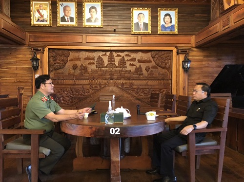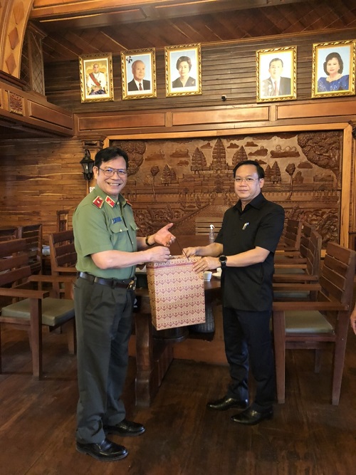 Thiếu tướng Lê Vinh Quy - Uỷ viên Ban Thường vụ Tỉnh uỷ, Giám đốc Công an tỉnh đã có buổi thăm và làm việc với ngài Thoong Sa Vun - Tỉnh trưởng, Chủ tịch Đảng CPP, tỉnh Mondulkiri, Vương quốc Campuchia