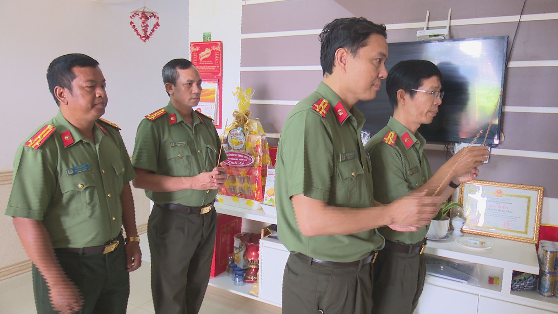 Vừa qua, đoàn công tác do Thượng tá Lê Hữu Tuấn – Phó Giám đốc Công an tỉnh làm Trưởng đoàn và các phòng nghiệp vụ An ninh thuộc Khối thi đua số 3 của Công an tỉnh Đắk Lắk vừa đến thăm, động viên gia đình 4 Liệt sỹ Công an xã ở huyện Cư Kuin, đã hy sinh trong vụ khủng bố do nhóm phản động FULRO gây ra ngày 11/6/2023 vừa qua.