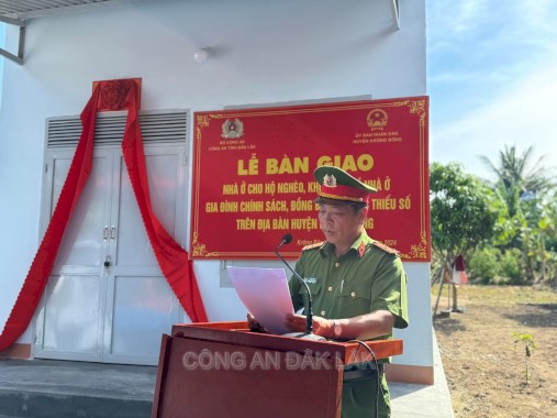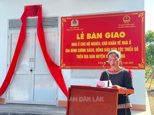 Phát biểu tại buổi Lễ, đồng chí Thượng tá Lê Chí Đông - Trưởng Công an huyện nhấn mạnh việc xây dựng và triển khai thực Đề án hỗ trợ xây dựng nhà ở cho hộ nghèo, khó khăn về nhà ở, gia đình chính sách, đồng bào DTTS trên địa bàn tỉnh Đắk Lắk nói chung, huyện Krông Bông nói riêng là việc làm rất có ý nghĩa, thiết thực, hỗ trợ người dân khó khăn có nhà ở ổn định, từng bước nâng cao chất lượng cuộc sống, tạo chuyển biến về đời sống vật chất, tinh thần của đồng bào DTTS, củng cố lòng tin của người dân đối với Đảng, Nhà nước và cấp ủy, chính quyền địa phương, góp phần phòng ngừa, ngăn chặn âm mưu, hoạt động của các thế lực thù địch, phản động lôi kéo, tác động, kích đồng bào DTTS tham gia các hoạt động chống phá.