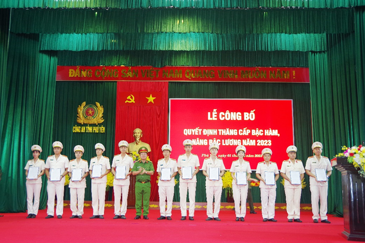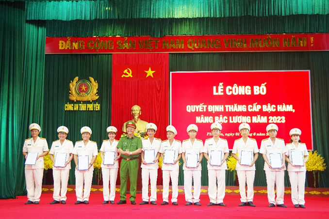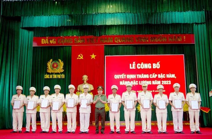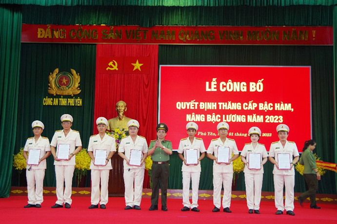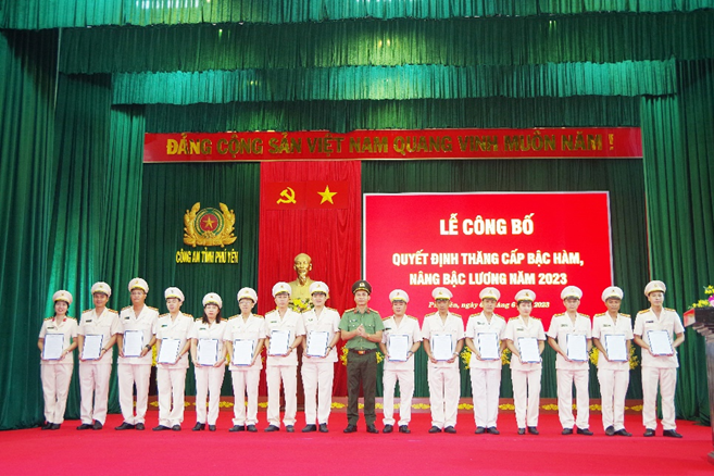Sáng ngày 1/6/2023, Công an tỉnh Phú Yên tổ chức Lễ công bố quyết định thăng cấp bậc hàm, nâng bậc lương năm 2023. Đại tá Phan Thanh Tám - Ủy viên Ban Thường vụ Tỉnh ủy, Bí thư Đảng ủy, Giám đốc Công an tỉnh chủ trì buổi lễ. Tham dự buổi lễ còn có các đồng chí lãnh đạo Công an tỉnh, lãnh đạo Công an các đơn vị, địa phương và các đồng chí đại diện cho cán bộ chiến sĩ được thăng cấp bậc hàm, nâng bậc lương năm 2023.