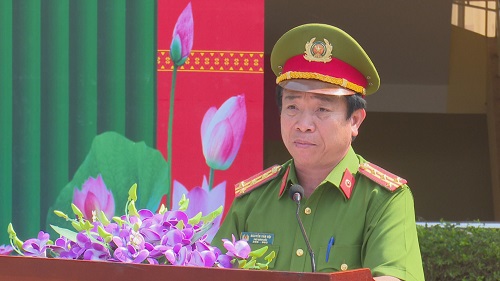 Đồng chí Đại tá Nguyễn Văn Hội - Phó Giám đốc Công an tỉnh phát biểu tại buổi lễ