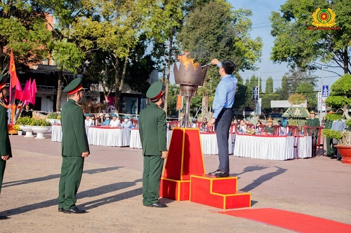 Đ/c Từ Thái Giang - Ủy viên BTV Tỉnh ủy, Bí thư Thành ủy Chủ tịch HĐND TP. Buôn Ma Thuột thắp đuốc mở màn Lễ Giao quân