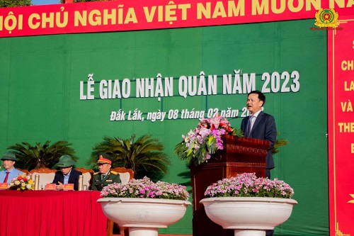 Dự Lễ Giao nhận quân có các đại biểu gồm đồng chí Thượng tướng Phùng Sỹ Tấn – Phó tổng Tham mưu trưởng Quân đội nhân dân Việt Nam; đồng chí Trung tướng Thái Đại Ngọc - Ủy viên BCH Trung ương Đảng, Tư lệnh quân khu 5; đồng chí Nguyễn Đình Trung - Ủy viên BCH Trung ương Đảng, Bí thư Tỉnh ủy Đắk Lắk; đồng chí Đại tá Hán Minh Thanh – Phó Tư lệnh Quân đoàn 3; đồng chí thiếu tướng Lê Vinh Quy - Ủy viên BTV Tỉnh ủy, Giám đốc Công an tỉnh, Phó chủ tịch Thường trực Hội đồng nghĩa vụ quân sự tỉnh; đồng chí Đại tá Lê Mỹ Danh, Ủy viên BTV tỉnh ủy, Chỉ huy trưởng Bộ Chỉ huy Quân sự tỉnh, Phó chủ tịch thường trực Hội đồng nghĩa vụ quân sự tỉnh; đồng chí Từ Thái Giang - Ủy viên BTV tỉnh ủy, Bí thư thành ủy Chủ tịch Hội đồng nhân dân TP. Buôn Ma Thuột; đồng chí Nay Phi La – Giám đốc Sở Y tế Đắk Lắk; đồng chí Vũ Văn Hưng – Chủ tịch UBND thành phố, Chủ tịch Hội đồng nghĩa vụ quân sự thành phố và đại biểu thuộc lực lượng quân đội, công an; đại biểu của các sở, ban, ngành trực thuộc tỉnh và Thành phố; đại diện các báo đài và 356 công dân ưu tú lên đường nhâp ngũ và thực hiện nghĩa vụ tham gia CAND.