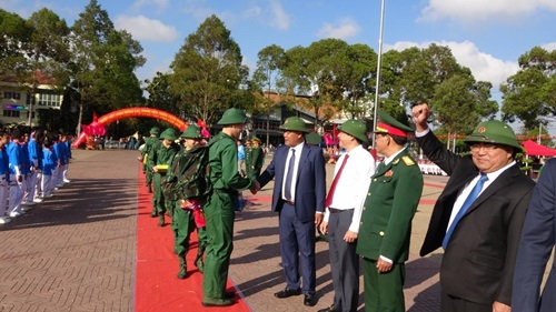 Đến dự buổi lễ có các đại biểu gồm các đồng chí: Y Biêr Niê – Phó Bí Thư Tỉnh ủy; đ/c Đại tá Niê Tar - Phó Bí thư Đảng ủy Quân sự, Chỉ huy trưởng Bộ Chỉ huy Quân sự tỉnh, Phó Chủ tịch thường trực Hội đồng Nghĩa vụ quân sự; đ/c Từ Thái Giang – Ủy viên Ban Thường vụ Tỉnh ủy, Bí thư Thành ủy, Chủ tịch HĐND Thành phố; đ/c Võ Ngọc Tuyên – Tỉnh ủy viên, Giám đốc Sở Kế hoạch & Đầu tư, thành viên Hội đồng Nghĩa vụ quân sự tỉnh; đ/c Nguyễn Hữu Việt – Phó Bí thư Thường trực Thành ủy; đ/c Vũ Văn Hưng – Phó Bí thư Thành ủy, Chủ tịch UBND, Chủ tịch Hội đồng nghĩa vụ Quân sự thành phố; đ/c Thượng tá Nguyễn Văn Tựu, Ủy viên Ban Thường vụ Tỉnh ủy Thành ủy – Chỉ huy trưởng Ban Chỉ huy quân sự thành phố, Phó Chủ tịch thường trực Hội đồng Nghĩa vụ quân sự thành phố; đ/c Thượng tá Lê Văn Mạnh – Phó trưởng Công an thành phố và các đại biểu thuộc lực lượng Quân đội, Công an; đại biểu các sở, ban, ngành trực thuộc tỉnh và thành phố; đại diện các cơ quan truyền thông và 355 công dân ưu tú lên đường nhập ngũ và thực hiện nghĩa vụ tham gia CAND.