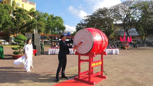 Đ/c Vũ Văn Hưng, Chủ tịch UBND Thành phố nổi trống mở hội giao quân