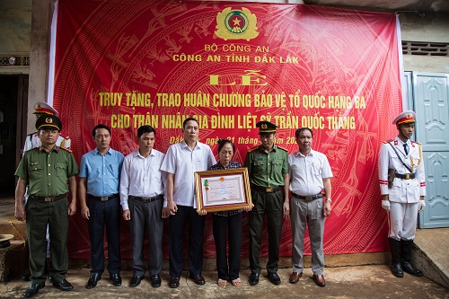 Tại buổi Lễ, trong không khí trang trọng, thừa uỷ quyền của Chủ tịch nước, đồng chí Võ Văn Cảnh, Phó Chủ tịch UBND tỉnh Đắk Lắk đã trao Huân chương Bảo vệ Tổ quốc cho thân nhân gia đình các liệt sĩ. Đây là sự tri ân, tôn vinh của Đảng, Nhà nước và Nhân dân đối với những người đã hy sinh vì sự nghiệp xây dựng và bảo vệ an ninh Tổ quốc.