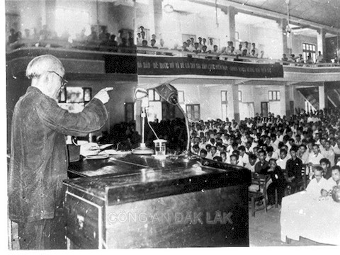 Ảnh tư liệu: Chủ tịch Hồ Chí Minh đến dự và huấn thị tại Hội nghị Cán bộ của Lực lượng CAND, tháng 3/1963