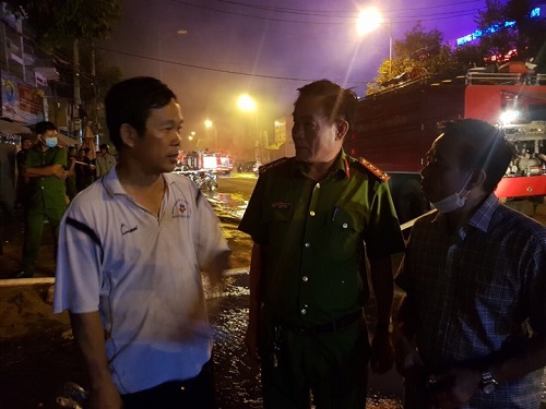 Đại tá Nguyễn Minh Kính - Phó Giám đốc Công an tỉnh trực tiếp chỉ đạo công tác chữa cháy tại hiện trường