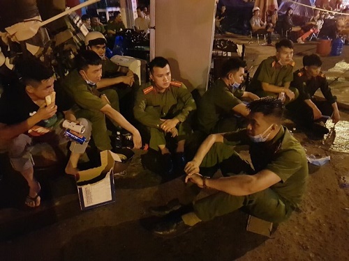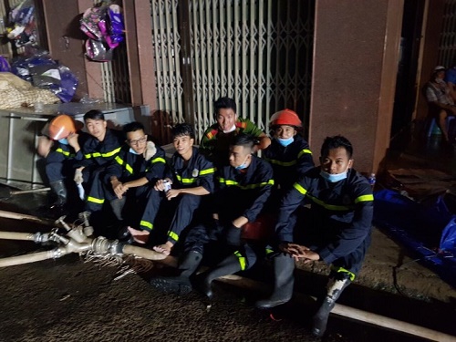 Hình ảnh CBCS tạm nghỉ ngơi sau khi dập tắt đám cháy