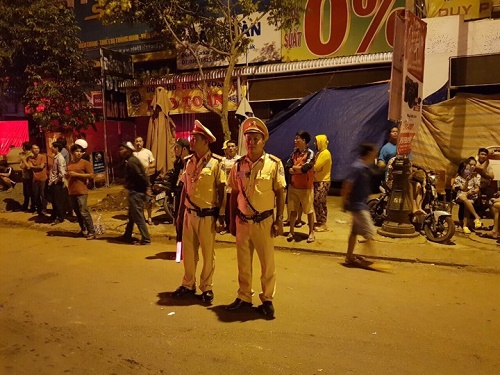 Lực lượng Cảnh sát giao thông Công an tỉnh, Công an huyện Ea Kar phân luồng bảo đảm trật tự, an toàn giao thông trong quá trình chữa cháy.