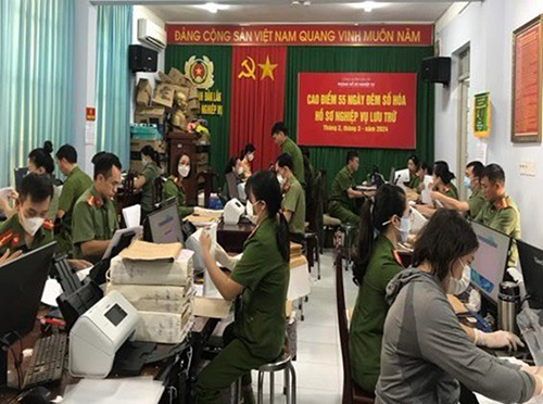 Với tinh thần quyết tâm trên, hòa mình trong không khí thi đua sôi nổi lập thành tích chào mừng ngày thành lập lực lượng Hồ sơ nghiệp vụ trên toàn quốc, cùng với sự chỉ đạo quyết liệt của lãnh đạo Công an tỉnh, tập thể Cấp ủy, lãnh đạo Phòng Hồ sơ nghiệp vụ, trong đợt cao điểm “55 ngày, đêm số hóa hồ sơ nghiệp vụ lưu trữ” , có hơn 100 cán bộ, chiến sỹ thuộc Phòng Hồ sơ nghiệp vụ và CBCS các đơn vị trực thuộc Công an tỉnh, Công an huyện, Thị xã, Thành phố, Đoàn thanh niên Công an tỉnh được điều động, tăng cường đang ngày, đêm nỗ lực hoàn thành số hóa 100% hồ sơ, tài liệu nghiệp vụ lưu trữ trước thời hạn được giao.