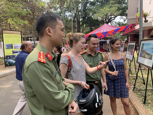 Hướng dẫn du khách nước ngoài tham quan triển lãm ảnh