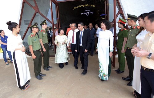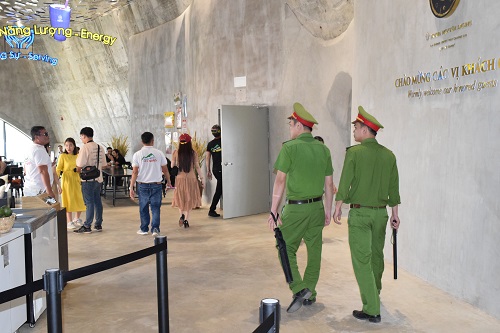 Chiến sĩ Công an vui vẻ, tận tình hướng dẫn du khách