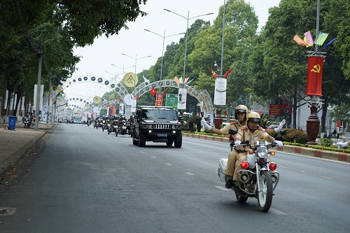 Cảnh sát giao thông bảo đảm TTATGT trên các tuyến đường nơi Lễ hội đường phố di chuyển qua