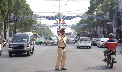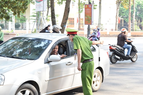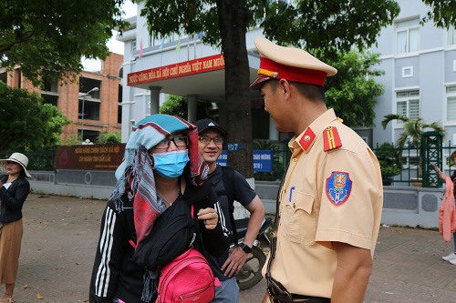 Cảnh sát giao thông tận tình chỉ đường, hướng dẫn cho khách phương xa đến tham quan lễ hội