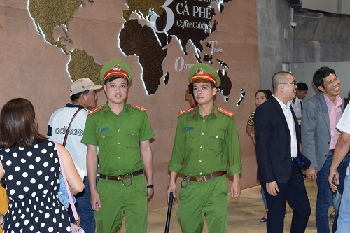 Các chiến sĩ Cảnh sát cơ động ngày đêm canh gác, tuần tra bảo đảm ANTT trong khu vực hội chợ triển lãm chuyên ngành cà phê