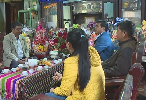 Hình mục sư Y Djan Êban - Quản nhiệm Chi hội Tin lành buôn Kniết, xã Ea Ktur, H.Cư Kuin, tỉnh Đắk Lắk nói chuyện, trao đổi với các cán bộ công an, chính quyền.