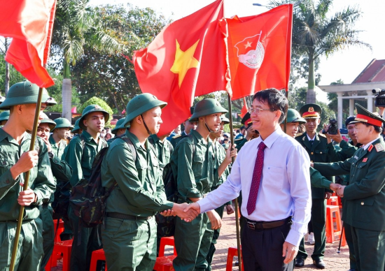 Bí thư Tỉnh ủy Nguyễn Đình Trung chúc các tân binh hoàn thành xuất sắc mọi nhiệm vụ được giao.