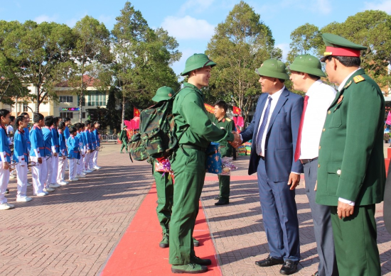 Phó Bí thư Tỉnh ủy Y Biêr Niê động viên tân binh lên đường nhập ngũ.
