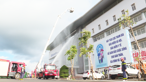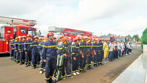 Lực lượng Cảnh sát PCCC Công an tỉnh Đắk Lắk thực tập phương án chữa cháy tại Bệnh viện đa khoa vùng Tây Nguyên