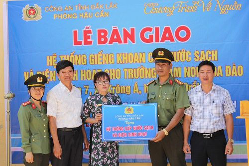 Đoàn công tác đã trao tặng cho Trường Mầm non Hoa Đào 01 công trình giếng khoan nước sạch