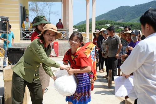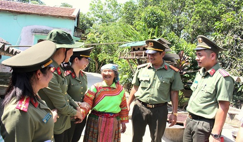 Tại đây, lãnh đạo phòng Hậu cần Công an tỉnh cùng đoàn công tác đã ân cần thăm hỏi các gia đình chính sách, hộ có hoàn cảnh đặc biệt khó khăn, kết hợp tuyên truyền các chủ trương, đường lối của Đảng, chính sách pháp luật của nhà nước, tuyên truyền, hướng dẫn phòng, chống dịch bệnh, nhất là dịch Covid -19, bạch hầu... Đoàn công tác đã trao tặng cho Trường Mầm non Hoa Đào 01 công trình giếng khoan nước sạch, hỗ trợ toàn bộ chi phí kéo dây đường điện chiếu sáng, 100 cuốn vở tô màu và bút chì màu; tặng cho trường Tiểu học Ngô Gia Tự (phân hiệu I) 01 tủ sách yêu thương và các loại sách tham khảo, truyện tranh dành cho lứa tuổi từ lớp 1 đến lớp 5; tặng 100 xuất quà gồm: gạo và nhu yếu phẩm cho gia đình chính sách và các hộ có hoàn cảnh đặc biệt khó khăn trong thôn 7. Tổng trị giá quà tặng khoảng 150 triệu đồng.