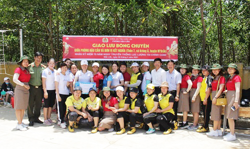 Cũng trong dịp này, cán bộ phụ nữ của đoàn công tác đã giao lưu bóng chuyền với hội phụ nữ của thôn kết nghĩa.