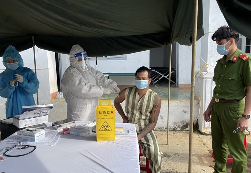 Hình ảnh CBCS Nhà tạm giữ Công an thành phố Buôn Ma phối hợp với Bệnh viện Công an tỉnh tổ chức tiêm vaccine cho can, phạm nhân