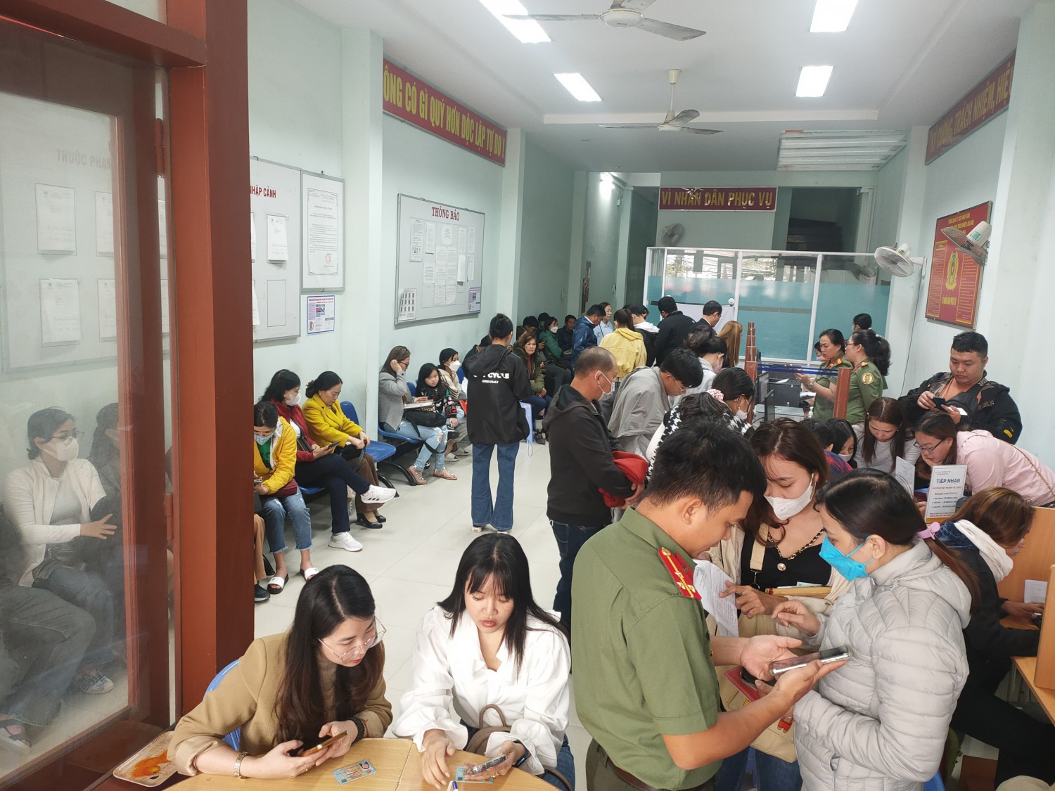 Đông đảo người dân đến làm thủ tục cấp đổi hộ chiếu tại Phòng Quản lý Xuất nhập cảnh - Công an tỉnh Phú Yên những ngày đầu năm mới