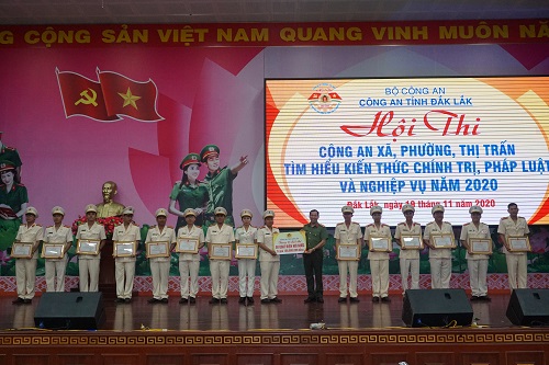 Công an tỉnh Đắk Lắk vừa tổ chức thành công Hội thi “Công an xã, phường, thị trấn tìm hiểu kiến thức chính trị, pháp luật và nghiệp vụ năm 2020”. Hội thi được tổ chức từ cấp cơ sở đến cấp Công an tỉnh. Ở cơ sở, Công an 15 huyện, thị xã, thành phố trên địa bàn tỉnh đã tổ chức cho 165 đội với 700 CBCS tham gia Hội thi với 2 nội dung: thi tìm hiểu kiến thức và thi xử lý tình huống. Sau vòng thi cấp cơ sở diễn ra ở Công an 15 huyện, thị xã, thành phố, mỗi đơn vị đã lựa chọn thành lập 01 đội tuyển gồm 05 thành viên để tiếp tục tham gia Hội thi “Công an xã, phường, thị trấn tìm hiểu kiến thức chính trị, pháp luật và nghiệp vụ năm 2020” cấp Công an tỉnh với 03 nội dung thi: tìm hiểu kiến thức, xử lý tình huống và thi năng khiếu.