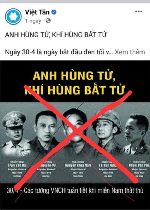 Các đối tượng ở nước ngoài là tàn dư của VNCH cũ hay ra rả những luận điệu cũ rích ca ngợi cái gọi là “anh hùng tử khí hùng bất tử” khi nói về những tướng lĩnh của ngụy quân Sài Gòn đã tự sát, trước trong và sau ngày 30/4/1975, đừng ca ngợi họ là “tuẫn tiết vì nước”.