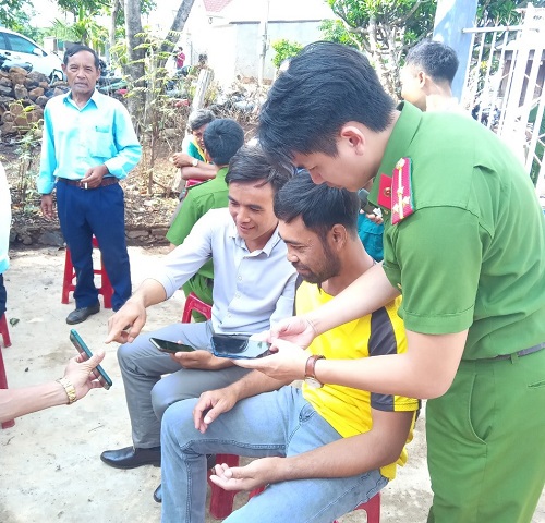 Cán bộ Công an xã Ea Nuôl, huyện Buôn Đôn nhiệt tình hướng dẫn người dân đăng ký, kích hoạt tài khoản đinh danh điện tử