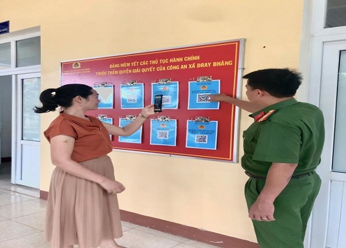 Công an cấp xã hướng dẫn người dân tra cứu thông tin thủ tục hành chính qua mã QR