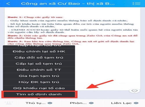Công an các đơn vị hướng dẫn người dân tra cứu mã định danh qua trang Zalo Offical