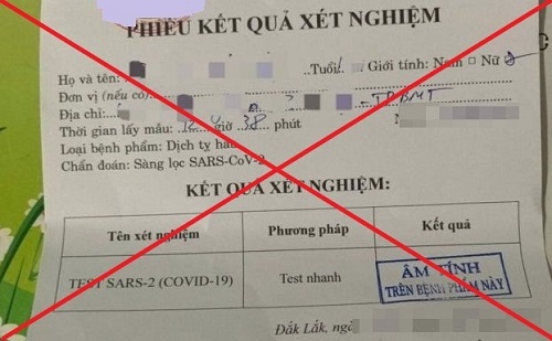 Khởi tố 01 vụ, 02 bị can về tội Làm giả con dấu, tài liệu của cơ quan tổ chức (làm giả Giấy xét nghiệm kháng nguyên Covid-19)