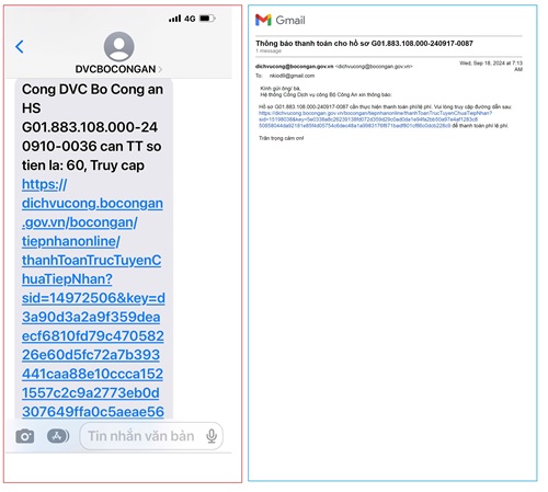 Ảnh minh hoạ tin nhắn SMS và email yêu cầu thanh toán
