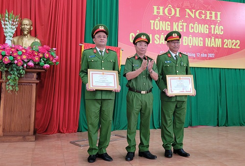 Lãnh đạo Công an tỉnh trao thưởng cho tập thể và CBCS của Phòng CSCĐ tại Hội nghị tổng kết năm 2022