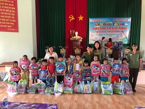 Nhân dịp Tết Trung thu và Khai giảng năm học mới 2019 - 2020, Hội phụ nữ Công an tỉnh Đắk Lắk đã phối hợp cùng một số đơn vị, nhóm thiện nguyện tổ chức chương trình “Nâng bước em đến trường” cho các em thiếu nhi ở xã Ea Uy, huyện Krông Pắc, tỉnh Đắk Lắk.