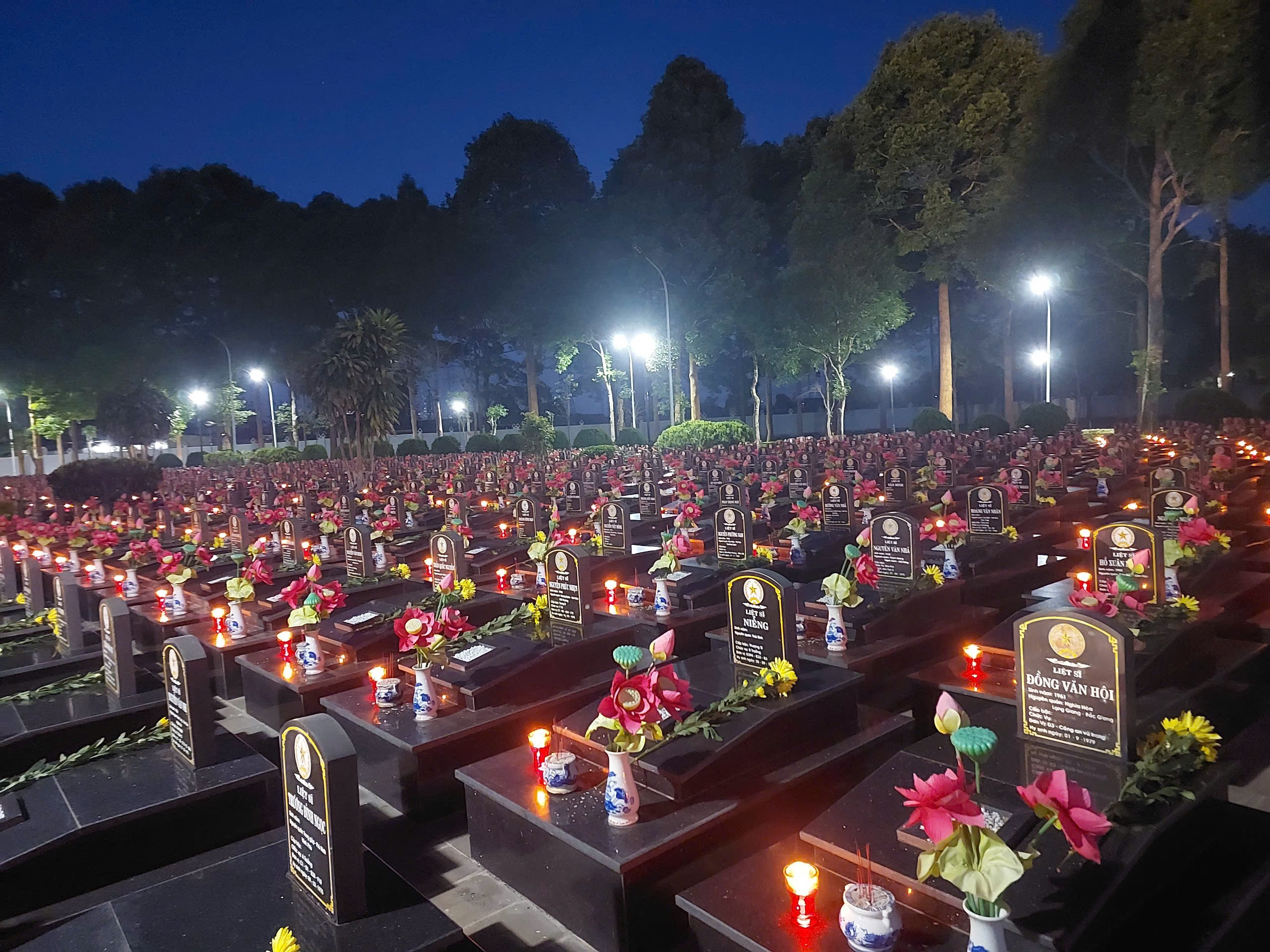Hình ảnh Nghĩa trang liệt sĩ tỉnh Đắk Lắk được thắp sáng bằng những ngọn nến tri ân của tuổi trẻ.